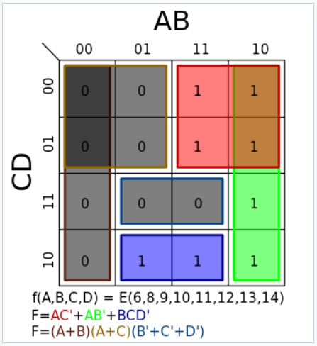- 빨간색 부분: AB*AB'*C'D'*C'D = AABB'C'C'D'D = AC' <※ AA = A, AA' = 1>